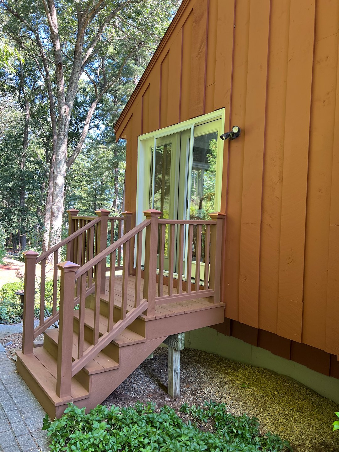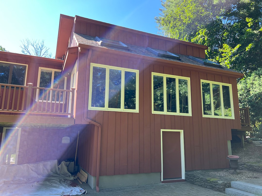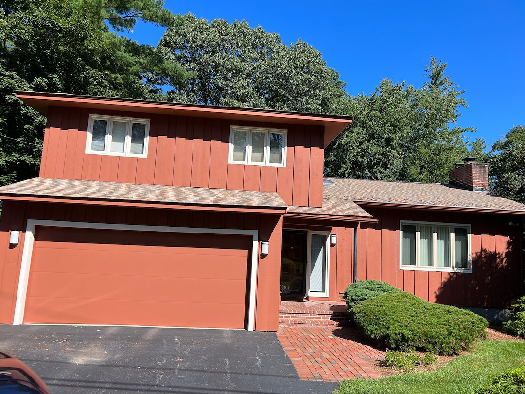 This exterior staining project in Nashua focused on refreshing the home with a full exterior staining service. We started with a complete power wash to remove dirt and buildup from the body and trim. Caulked all cracks and seams to help prevent water from getting in and causing wood damage. Any areas with peeling stain were scraped and spot primed to ensure proper adhesion. To finish, we applied two coats of stain in the existing color to both the body and trim, giving the home a clean, refreshed look while maintaining the original color the client preferred.